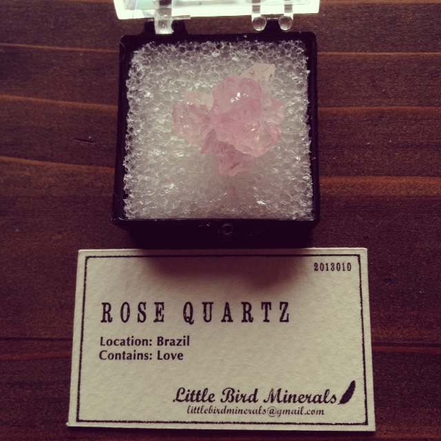 アルミ二ウムと酸化チタンを含み、ピンク色に発色しいるといわれています。光に敏感なので、太陽光など退色しやすい石です。微細な結晶が分散しているので、透明なものは珍しく、天然のローズクォーツの結晶は最大のものでも1cm程と小さいです。なので、鉱物として良質なものは、透明度が高く、しっかり結晶しているもの。こちらのブラジル産はそういった点においても、きれいなものだと思います。